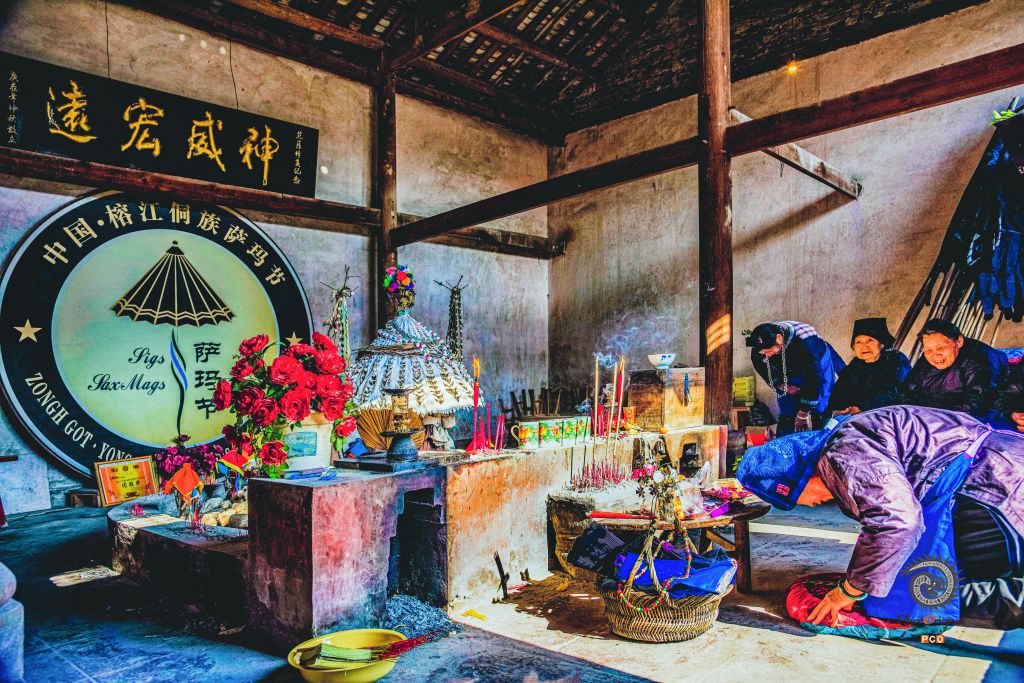 《祭拜萨玛》贵州省榕江县萨玛节侗族村民拜萨。2017年12月19日摄于榕江县三宝侗寨。