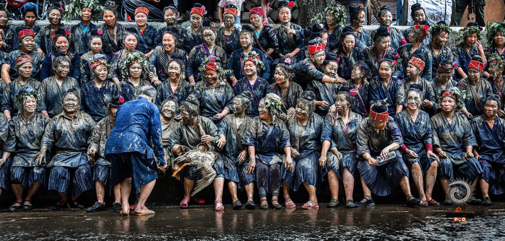在剑河县大稿午苗寨,寨民们水上祭祀结束后合影。