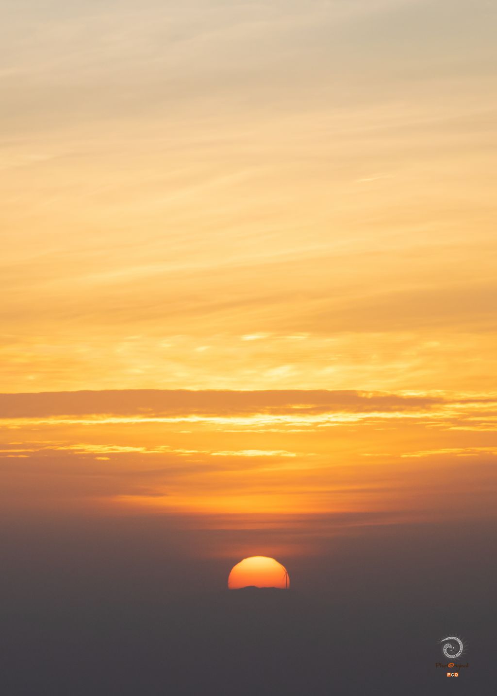 一轮红日喷薄而上,一架风车镶嵌其中,迎风而上,气势昂扬。