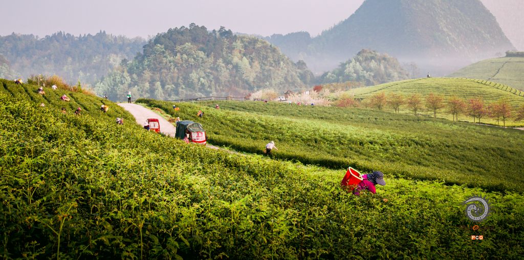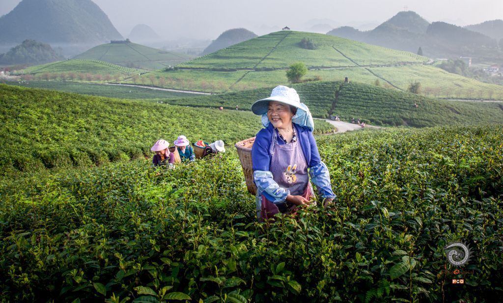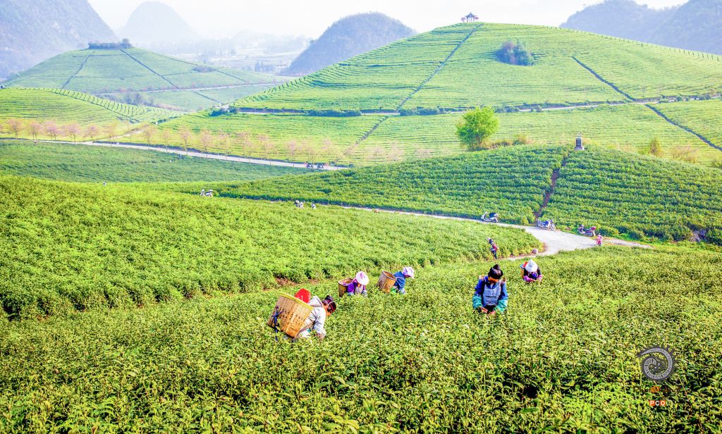 2021年3月19日,贵州安顺市西秀区鸡场乡,茶农正在采茶。这些采茶工一个上午的收入一般会在30到50元之间。茶业已被列为当地乡村振兴和生态绿色发展的重要项目之一。黄祖胜拍摄 13321773951