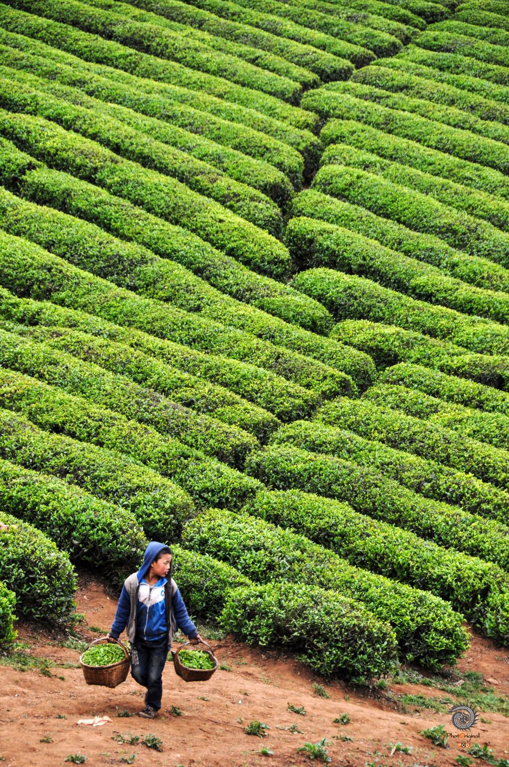 2014年4月26日,贵州省威宁县炉山镇的学生利用周末时间帮助茶场采茶。