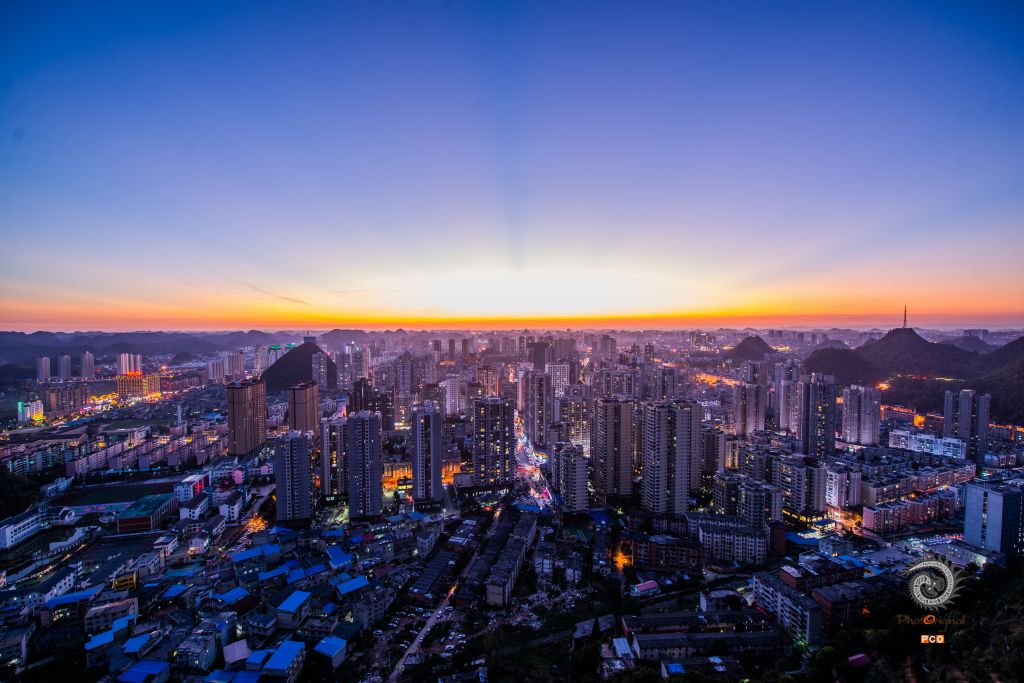 拍摄于2019年10月29日,在驼宝山山顶可以遇见安顺这座城市夕阳下的醉美景色
