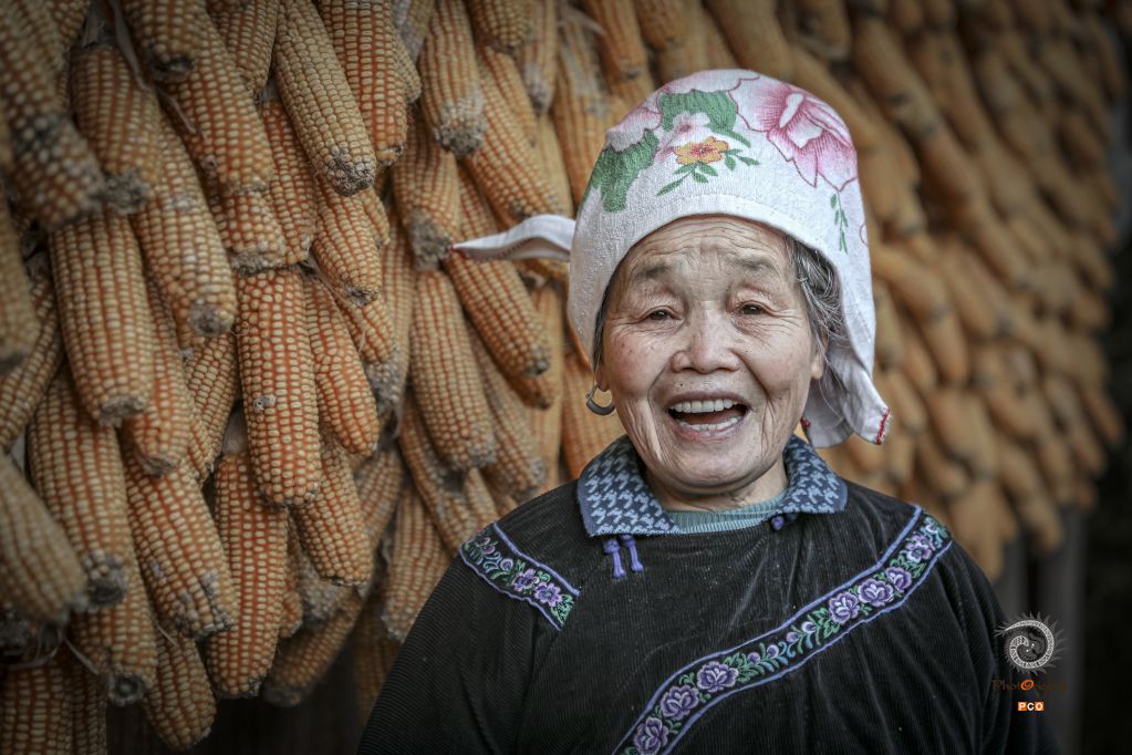 作品拍摄于贵州省黔东南苗族侗族自治州雷山县朗德上寨,在朗德,当有远方的客人来拜访时,寨中不管是老人、孩子、还是年轻人,都会盛装出行,热情款待。图中记录了一位年近八旬的苗家奶奶站在自家门前热情招待客人的场面。