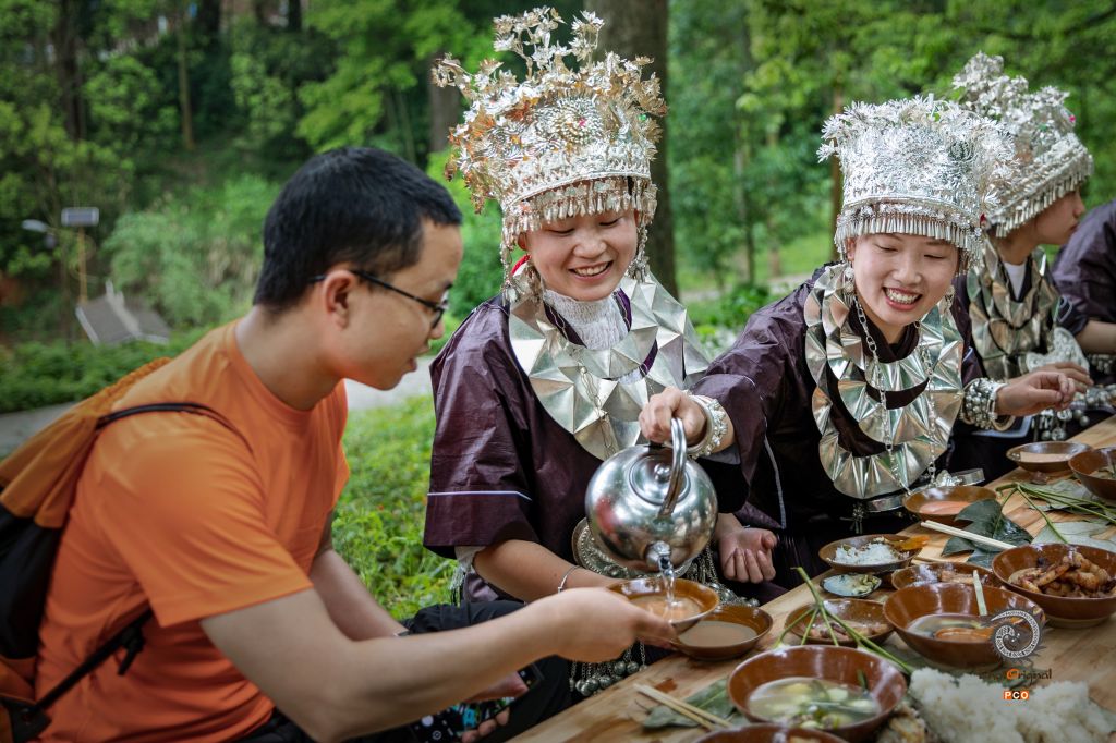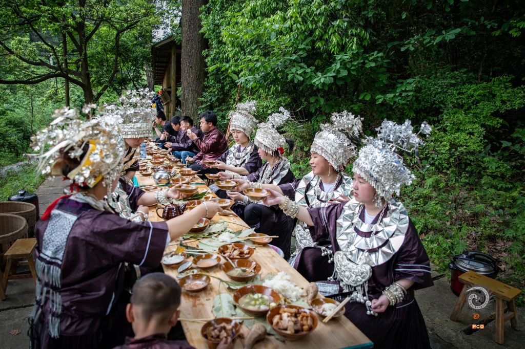 2021年5月2日摄于贵州省黔东南剑河县南寨镇展留村。展留苗寨拦门酒。