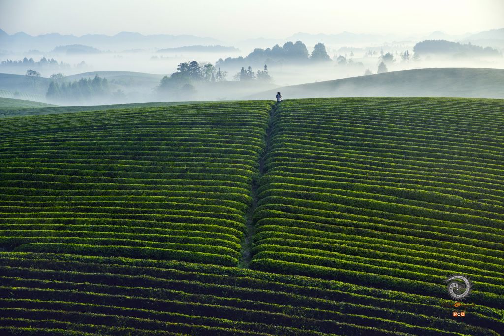 经常有雾的茶园,才有好茶。薄雾起,茶山那边如海市蜃楼一般仙景。