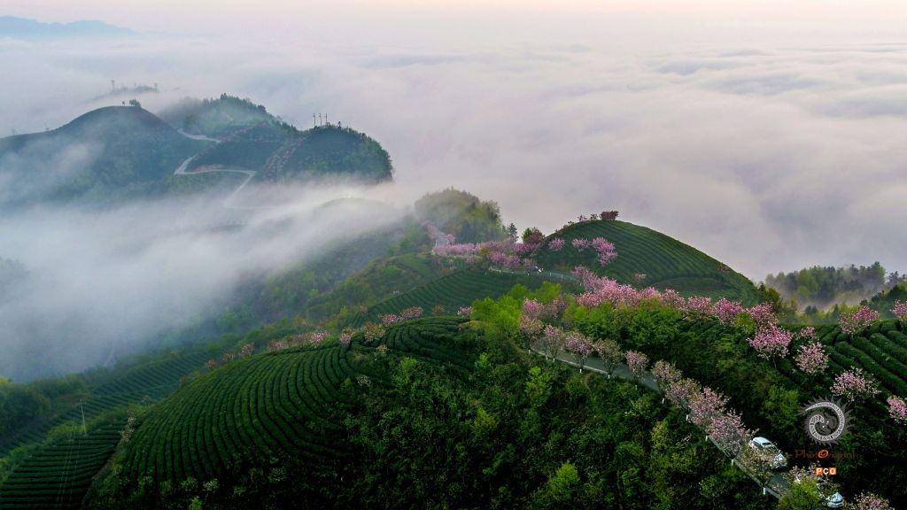《茶旅路线》茶旅在湄潭的象山 组照3(2018年―2019年拍摄于遵义湄潭县) 作者 周访华 电话:13308522824