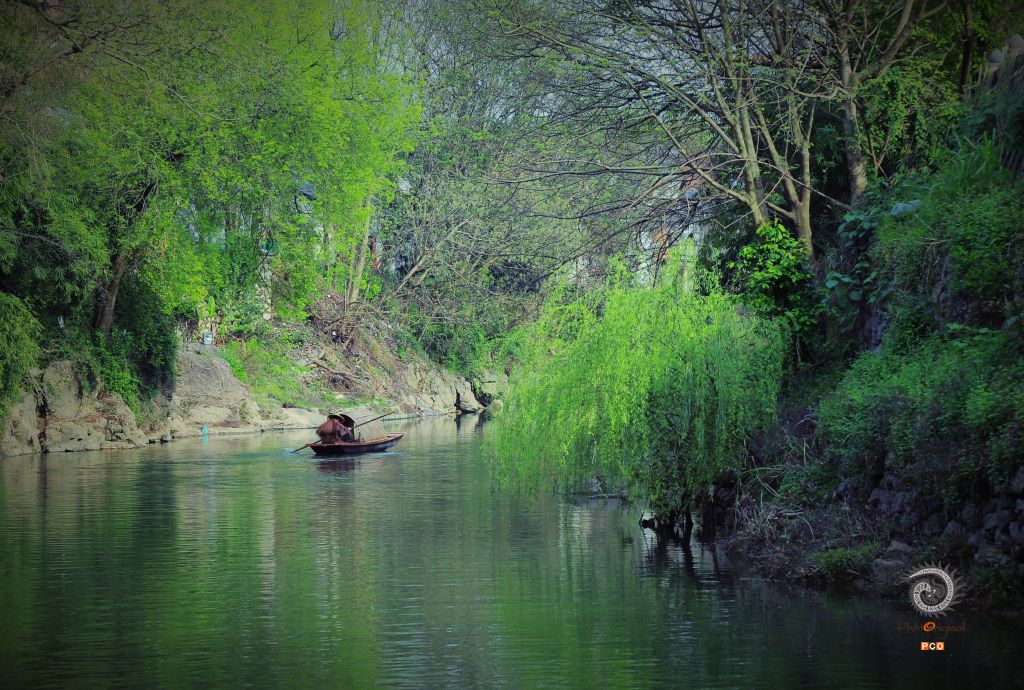一舟一河,两岸杨柳,道貌岸然