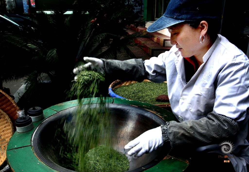《手工制作翠芽茶》(2016年4月拍摄于遵义湄潭县) 作者 周访华 电话:13308522824