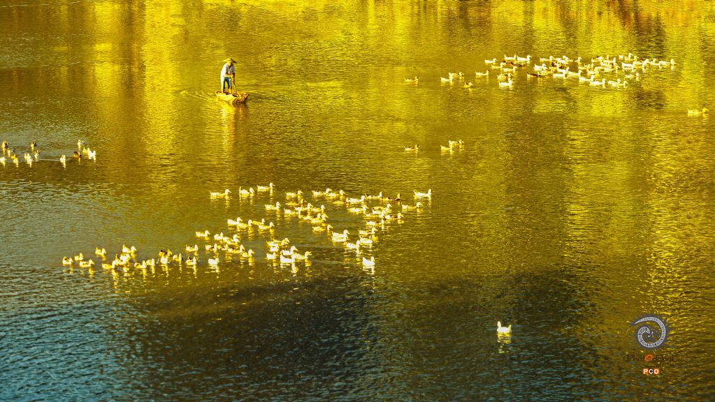 《亮江牧歌》拍摄于2018年8月4日,地点:锦屏县雷屯村。傍晚时分,一位鸭农划着小船,有节奏地发出吼声赶鸭牧归,犹如一曲动听的牧曲。