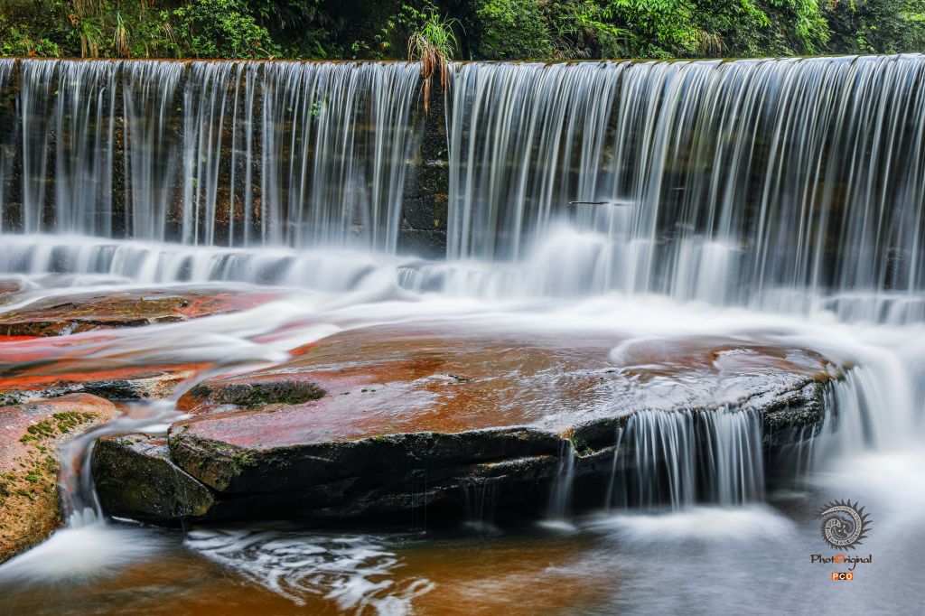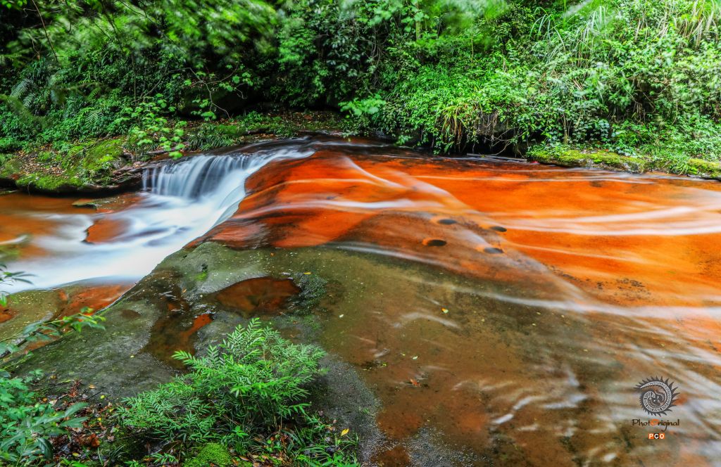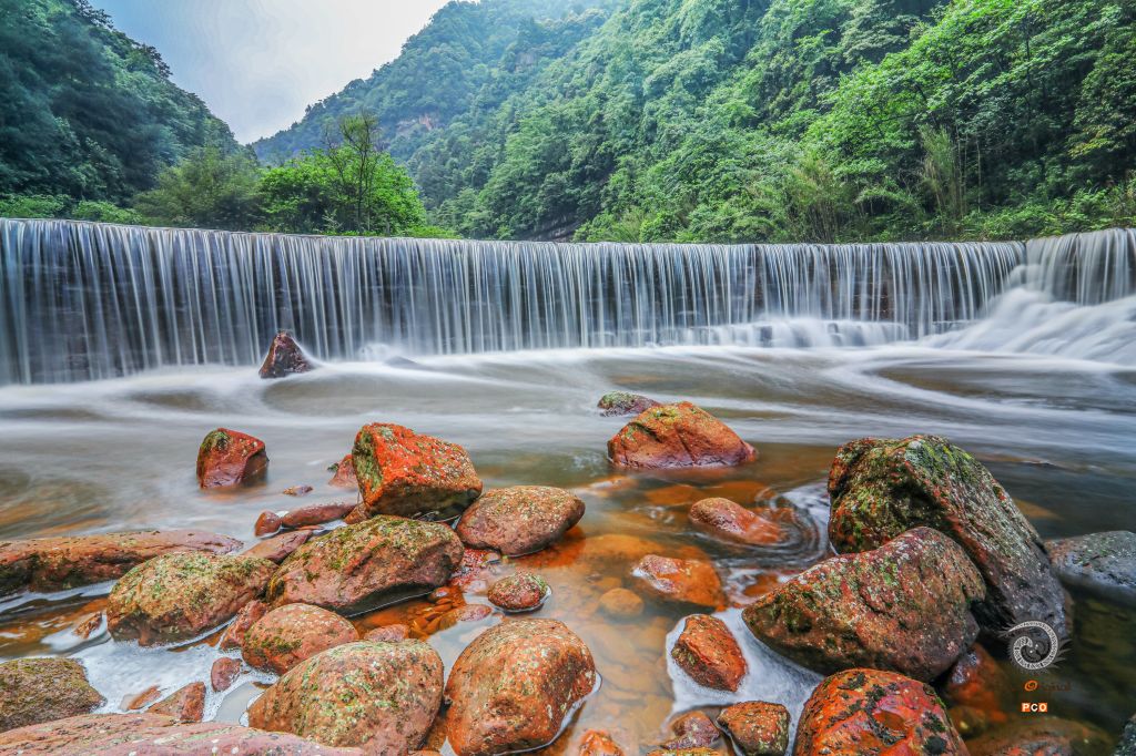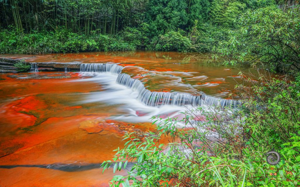 2021年5月3日拍摄于贵州省遵义市习水县三岔河丹霞谷风景区,漂亮的丹霞瀑布。