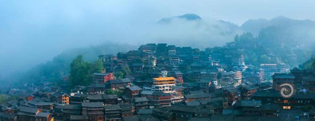 苗寨早雾纱轻掩