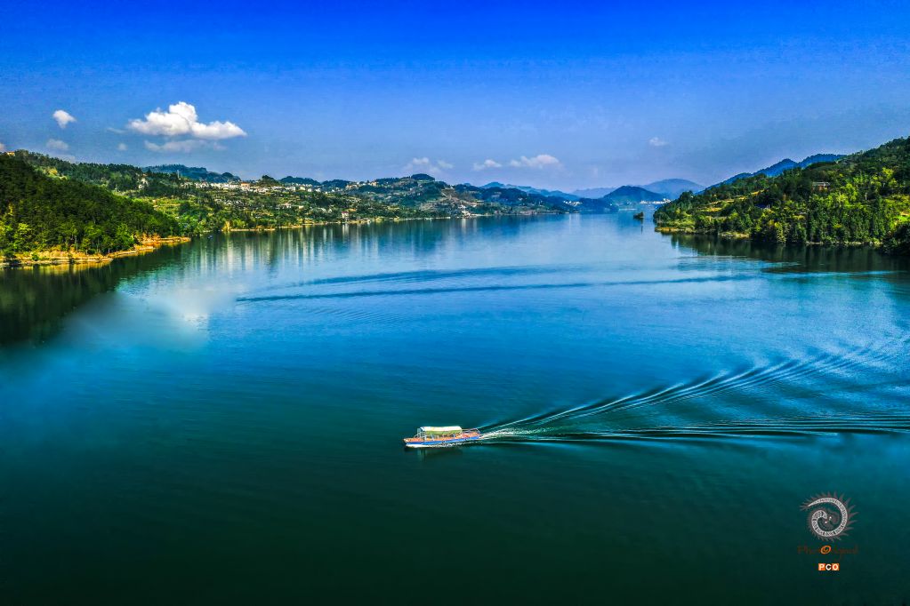 贵州省思南县香坝镇乌江河白鹭湖,碧水蓝天,在这里栖息着许多白鹭,故称为白鹭湖