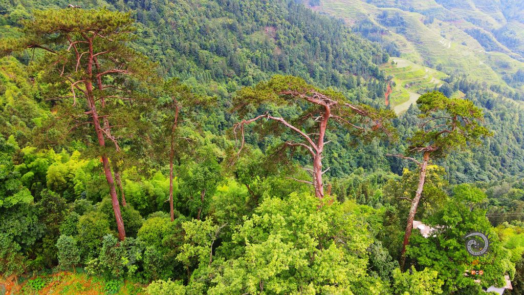 碧绿森林-新华村,全村群山环绕,有着碧绿森林,有着许多自然古树,主要以马尾松为主,村寨至今保存着较完好的珍惜古树,形成了得天独厚的天然氧吧。摄于2021年5月,新华村。