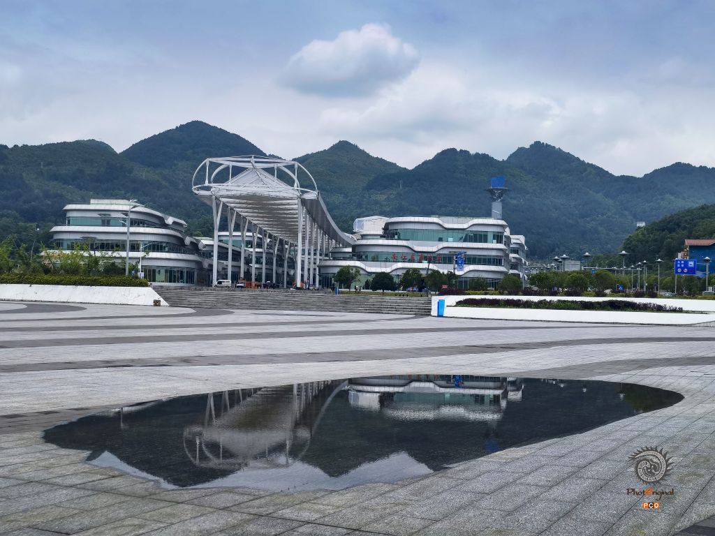此片拍摄于2021年5月贵州中国天眼地质科普馆,雨过天晴通过一片水之窗折射出科普馆
