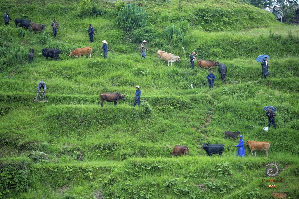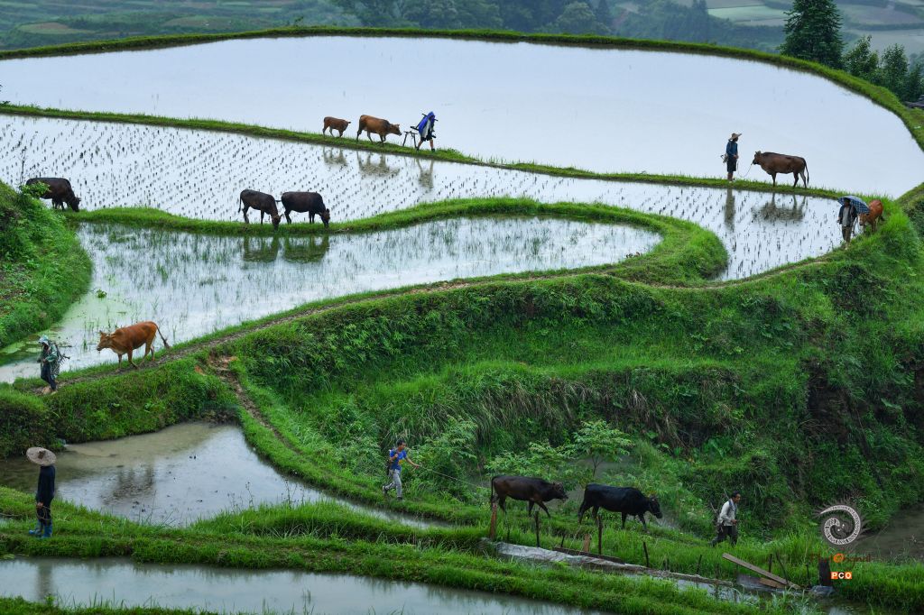 贵州省黔东南州黎平县尚重镇洋洞村是侗乡典型的农耕村寨,被誉为“最后牛耕部落”,春耕时节,一眼望去,山沟里、梯田上、田坝中村民们正在劳作。当地的村民们赶着耕牛,陆陆续续走进稻田里,或犁田或耙田,宛如一幅古老的画卷。