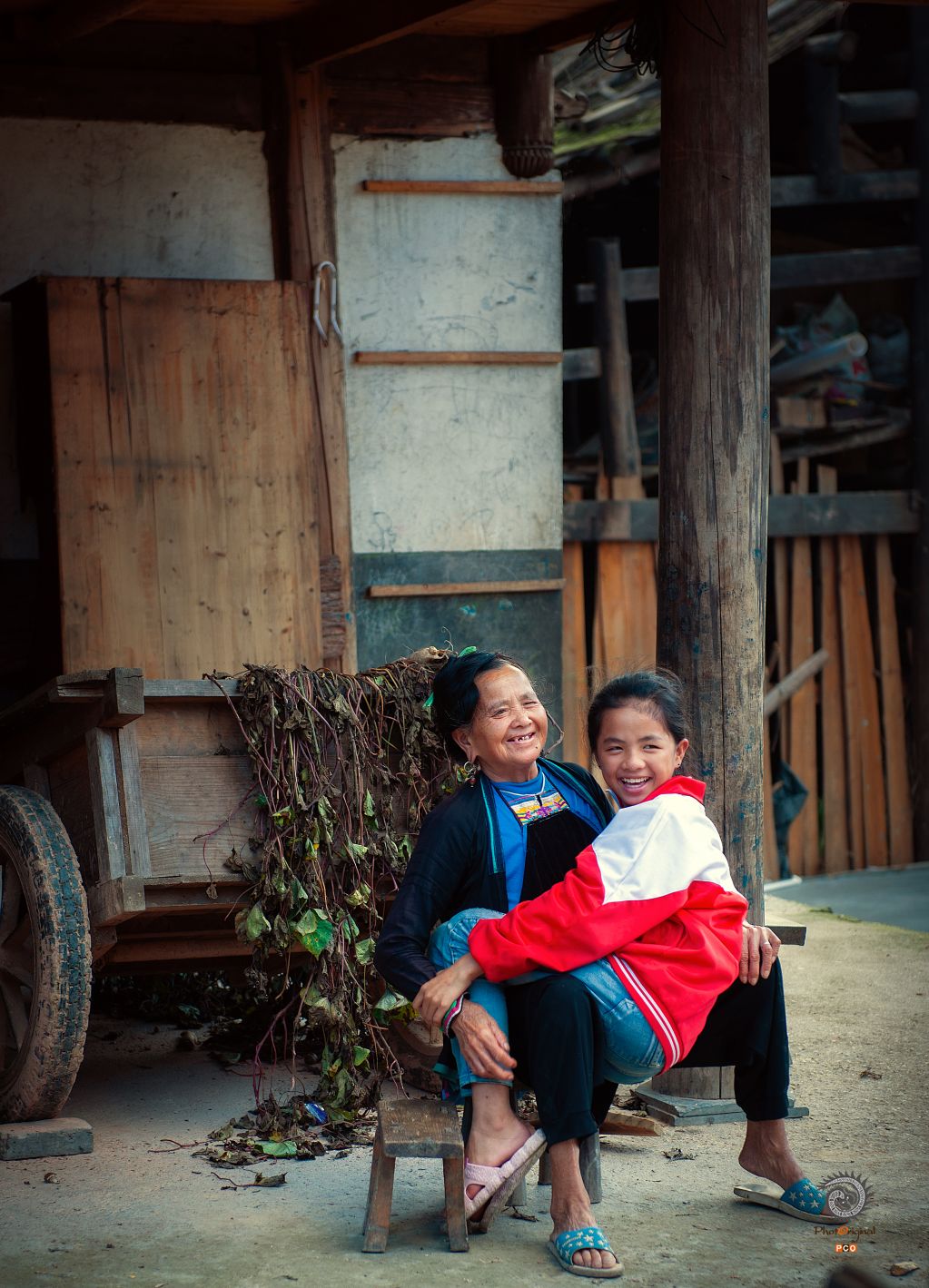 2016年11月19日拍摄于黔东南黄冈,小女孩放学回来一直黏在老人身边