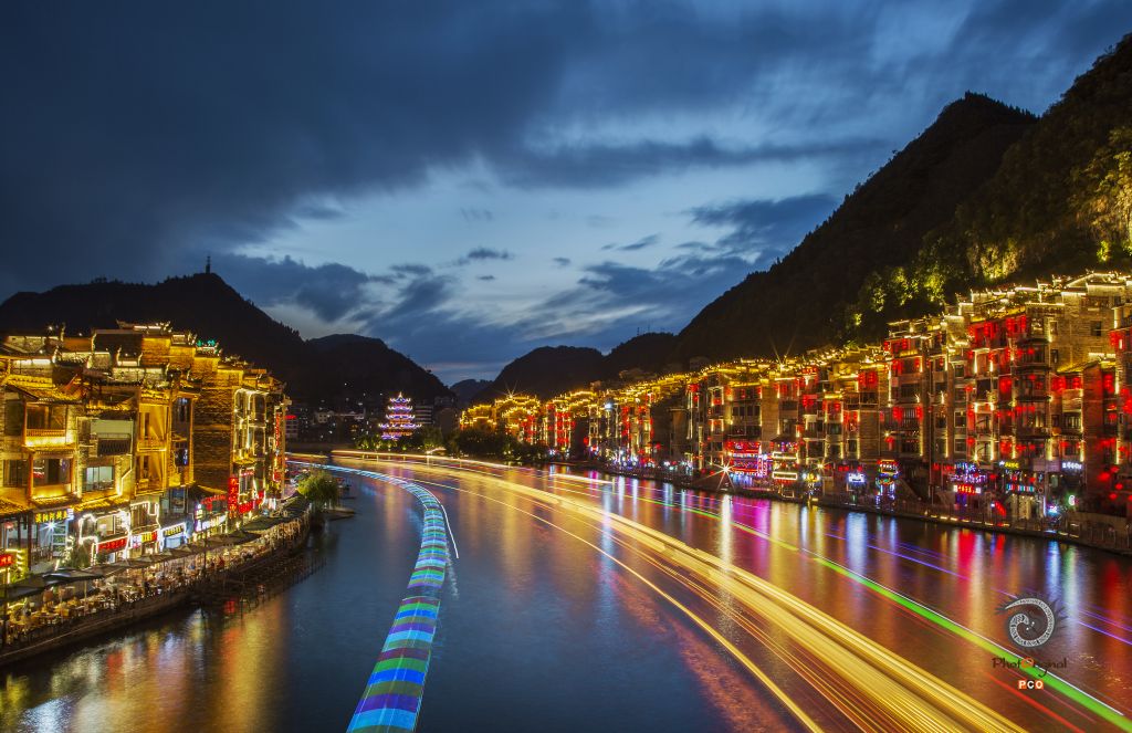 流光溢彩耀古城。2019.08.03拍摄于镇远古镇