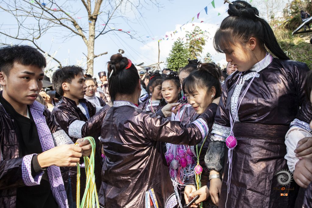 “吃相思”是贵州省黔东南地区苗族、侗族少数民族村寨自发组织的村与村之间的民间交流活动,活动时间不定。在“吃相思”期间,有丰富多彩的寨门拦路、对歌、吹芦笙、画花脸、互赠礼物、送别等文娱活动,村民们尽情欢乐。本组照记录了黔东南地区榕江县三盘村与从江县托苗村的“吃相思”活动。