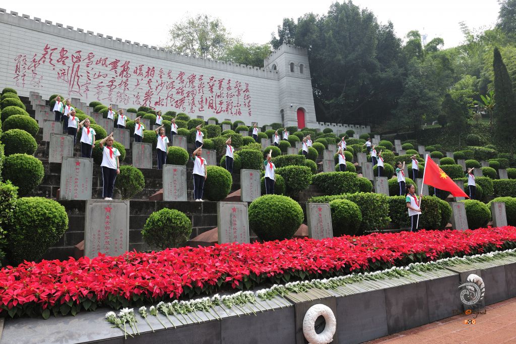 2020年清明节,赤水市中小学生到红军烈士陵园祭奠革命先烈。