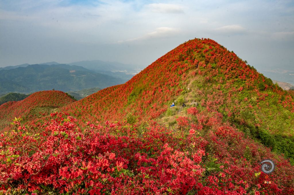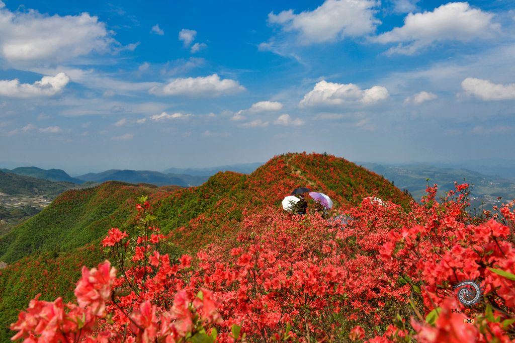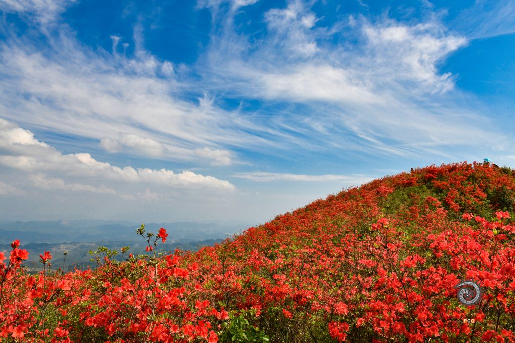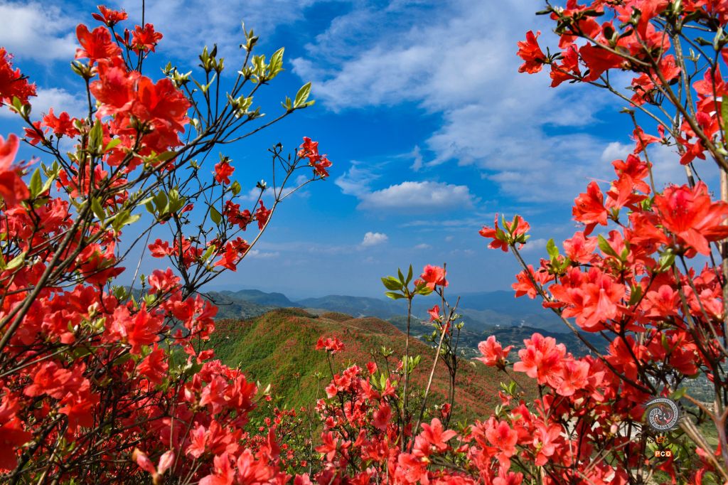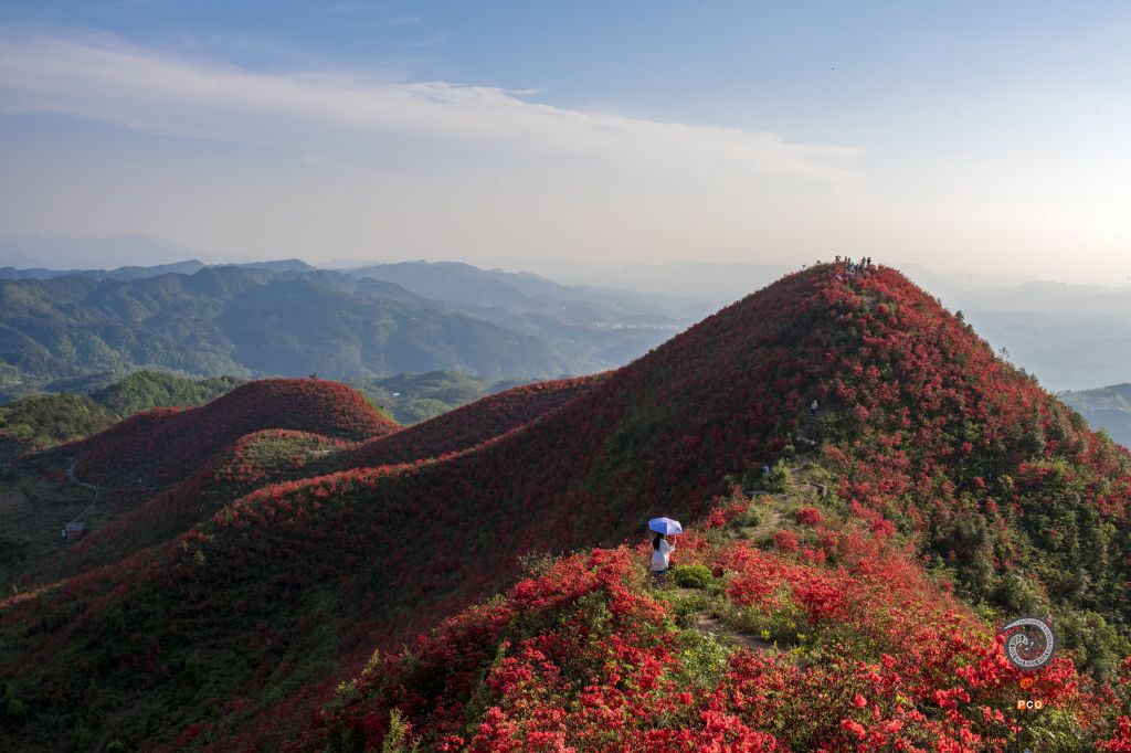 贵州省黄平县谷陇镇大高山上1万多亩映山红在春雨的滋润和阳光的照射下,纷纷爆开。远远望去,犹如一张巨大的红色地毯,将整个大高山脉衬映得红红火火,分万妖娆。