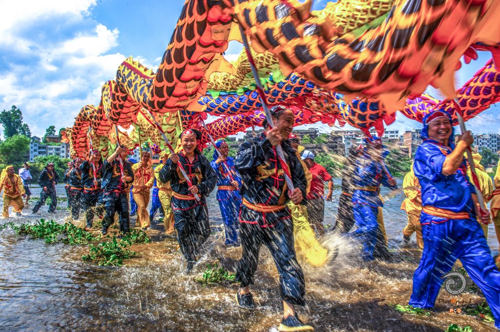 锦屏新化是一个有着600多年历史的屯堡故地,民族文化丰富多彩,在新化水龙节期间,“水龙”穿梭在田间、河边、街头巷尾,人们端着盆、提着桶、拿着水枪,把水泼洒到“龙”身上。 “水龙”活动起源于明朝中期,盛行于乾隆时期。每逢天气干旱,久不下雨,当地人就以耍“水龙”来祈雨,并祈祷一年风调雨顺。