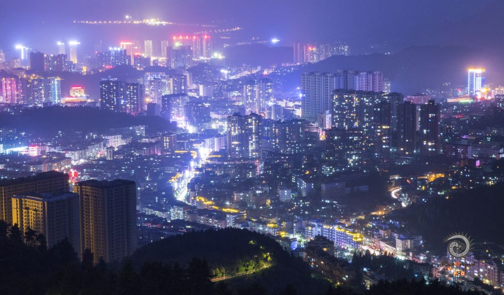 作品表现了七星关老城区傍晚万家灯火繁荣昌盛的景象