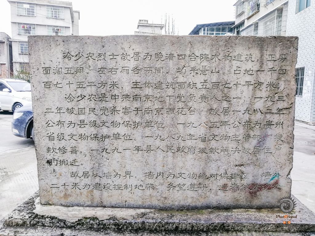 冷少农烈士故居参观。冷少农贵州省瓮安县人, 1900年1月25日出生在城南一个贫困的农民家庭,原籍冷家堡,后移居高庄,1917年四处借贷考入贵州公立法政专门学校法律本科第三期学习(该校1928年并入省立贵州大学),1923年毕业后就职于贵阳。从故居高庄出发到广州黄埔军校政治部参加革命工作,任周恩来主任办公室秘书。1927年大革命失败,中共转入地下斗争,冷少农奉党中央的指示,利用与何应钦是贵州同乡及贵州公立法政专门学校的师生关系打入南京国民政府高层,先后在训练总监部和军政部任部长何应钦的秘书,从事我党的地下情报工作,他是当时中共中央军委派驻南京地下党军事情报的负责人。为我党搜集了许多重大的政治、军事机密情报。避免了红军面临的挫折和灭顶之灾,使中国革命转危为安,为红军反围剿的胜利作出了重大贡献,成为中国共产党历史上最杰出的红色特工之一。