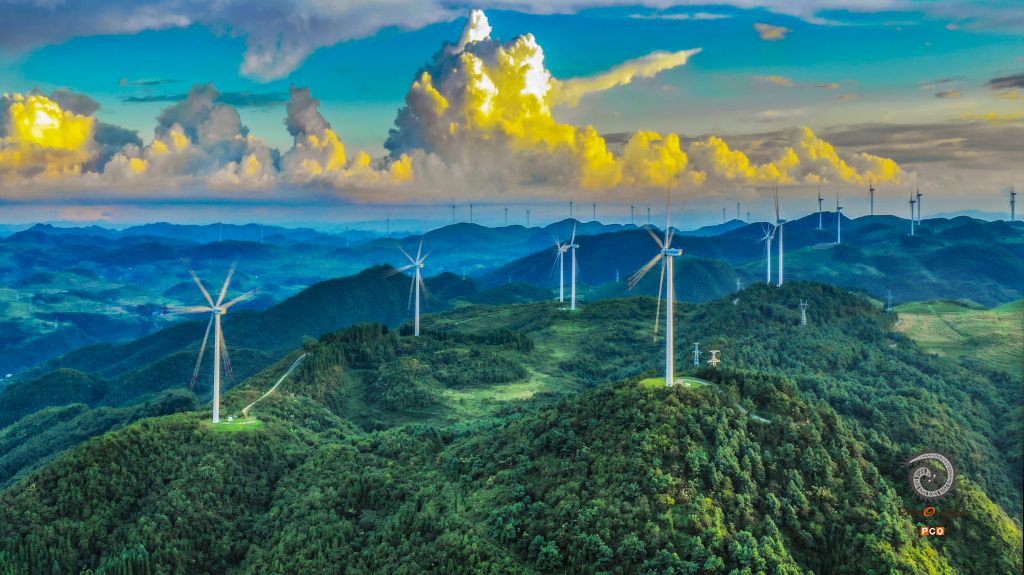 瓮安花竹山风力发电基地是瓮安一道亮丽的风景线。