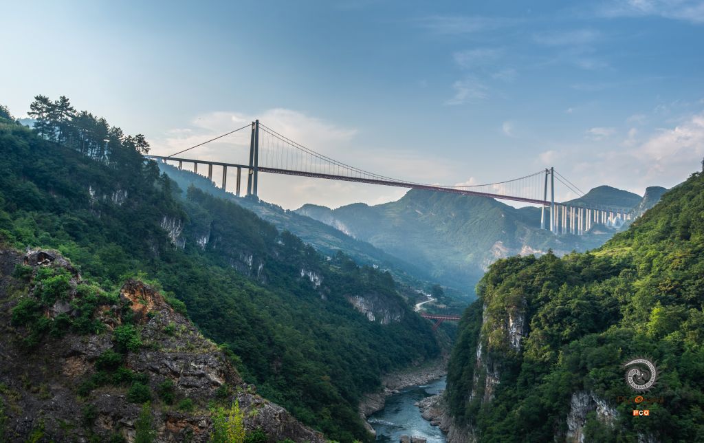 拍摄于2018年7月23日,清水河大桥位于贵州省开阳县与瓮安县交界处,主跨长1130米,垂直高度距离江面540米,距离峡谷406米