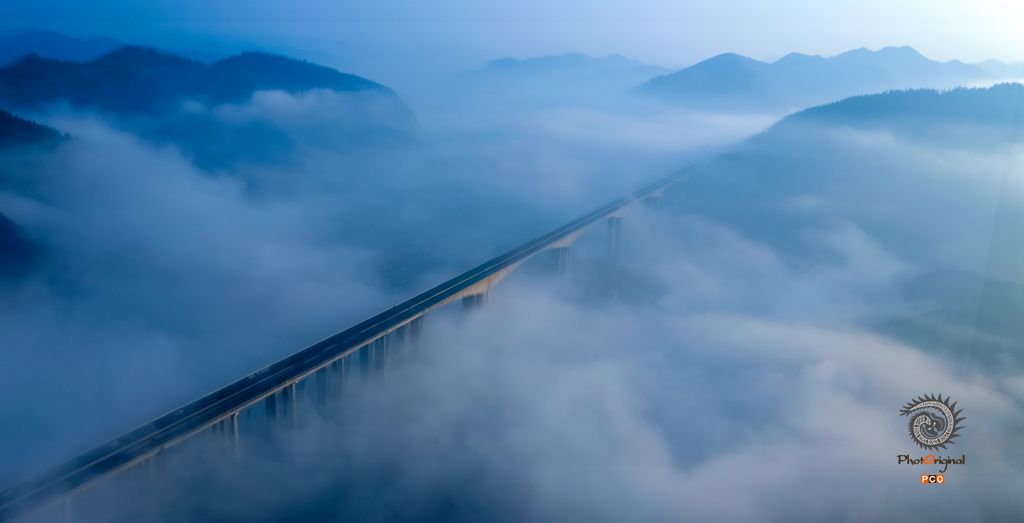 在云海之中沪昆高速贵州省盘州市英武镇内的虎跳河大桥宛如天上的天桥一样美。