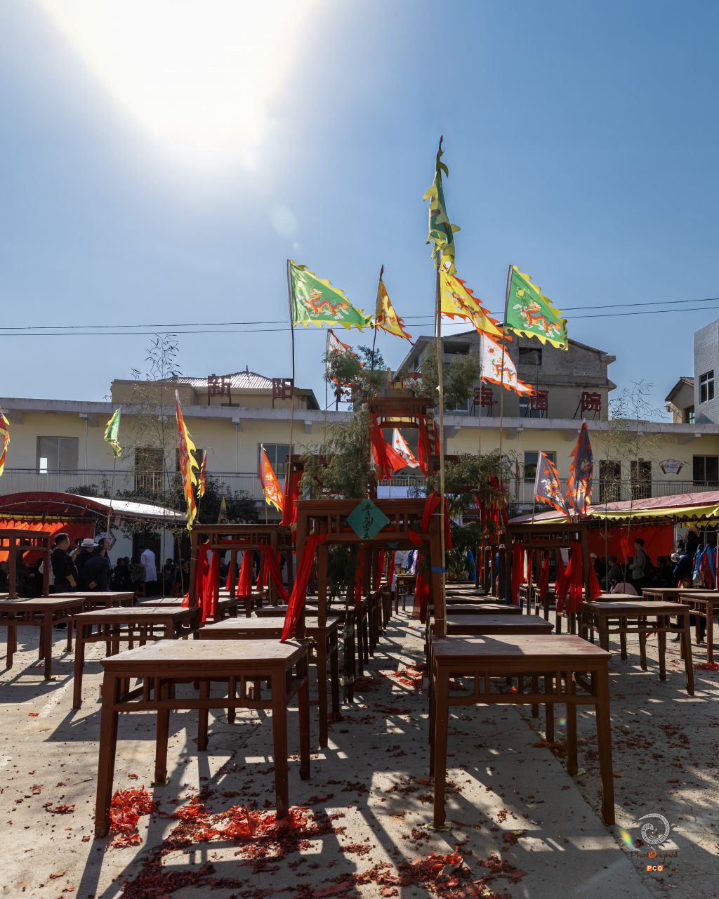 镜头聚焦安顺新阳坡木高台地戏,以仰角捕捉表演者立于高台的英武身姿,铠甲银饰在日光下泛着古战场的凛冽光泽。特写脸谱上的油彩与眉宇间的张力,远景收进台下村民的凝神注视。快门定格于腾跃瞬间的衣袂翻飞,让六百年军屯记忆在高台之上,借铿锵舞步与炽热目光,完成一次与历史的对话。