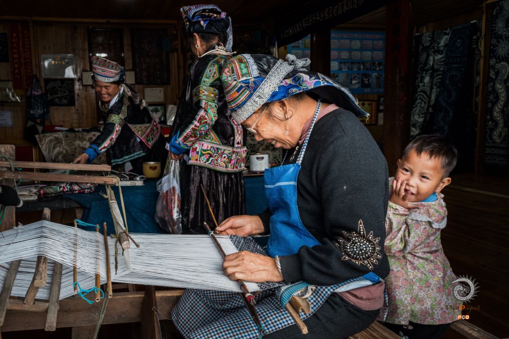 《织绣里的传承》在摆贝苗寨织机旁,苗族妇女身着缀 “百鸟” 纹样、刺绣繁复的传统服饰,以古老技法经纬穿梭。百鸟衣符号藏于针线,老人专注、孩童张望,织就的不只是布帛,更是苗族对自然敬畏的文化传承,让古老技艺在时光里延续。