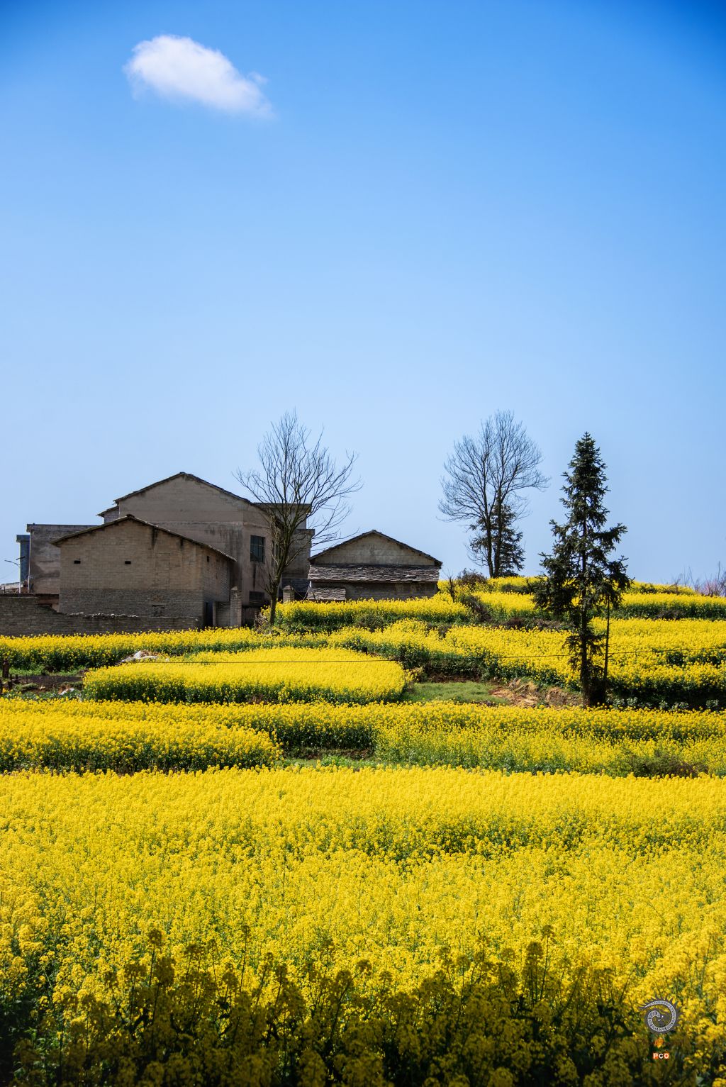 春天里的鲍家屯油菜花开满了房前屋后,花香四溢。