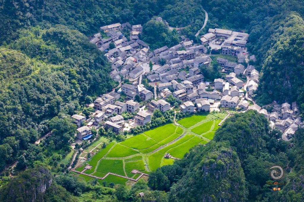 2024年8月5日,拍摄于贵州省安顺市镇宁布依族苗族自治县高荡千年布依古寨,航拍风光。