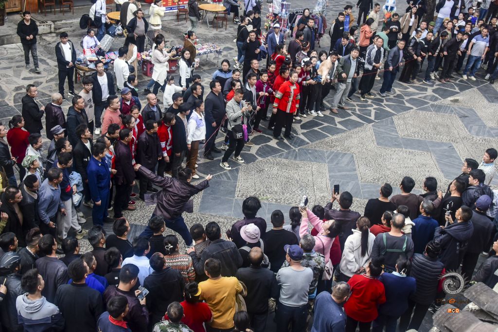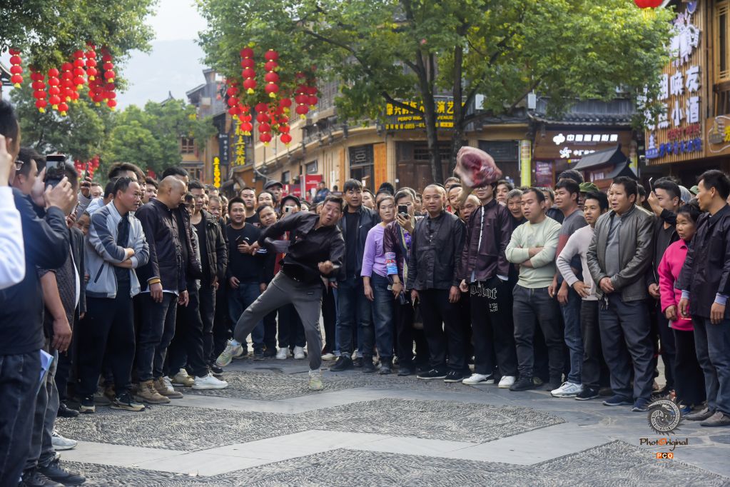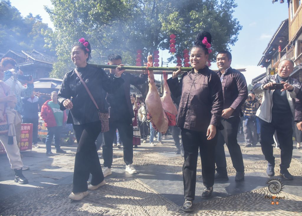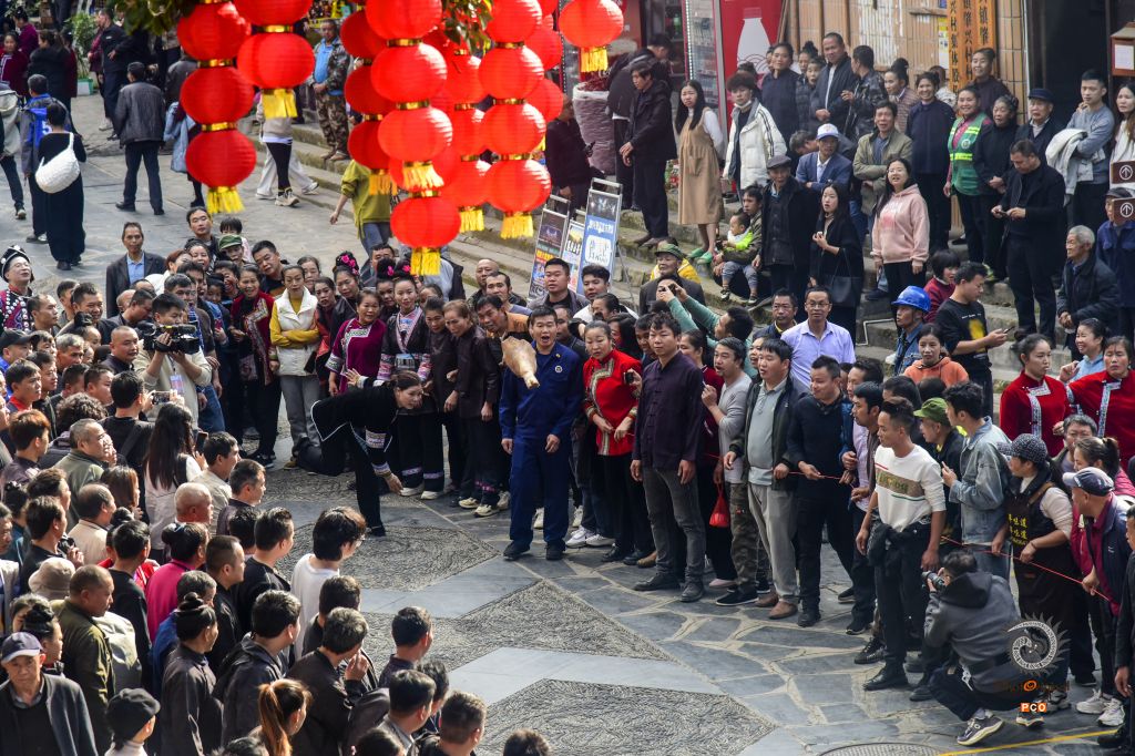 2023年12月15日拍于贵州肇兴侗寨,每年的侗年,肇兴侗族同胞都要举行丢猪脚比赛,来庆祝侗年的到来。