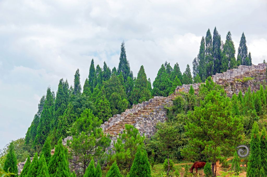 镇远府城垣,又称苗疆古长城,坐落于镇远县城北的石屏山之巅,始建于明代初期。这道城垣北起石屏山顶,横跨数个山头,东自石屏山东段悬崖之巅起始,随山势蜿蜒向西,直至天后宫西侧的下石屏山西段南麓与水北岸。它南面紧邻水面,充分利用了自然的地理优势作为屏障。