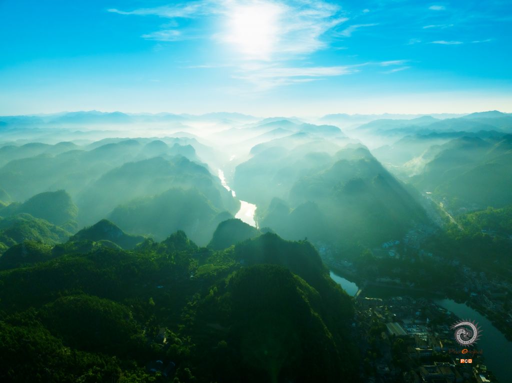 2024年7月21日,镇远古镇附近屯堡,清晨阳光洒下,渐渐铺满青山,山峦被雾气笼罩,若隐若现,尽显诗意与浪漫。