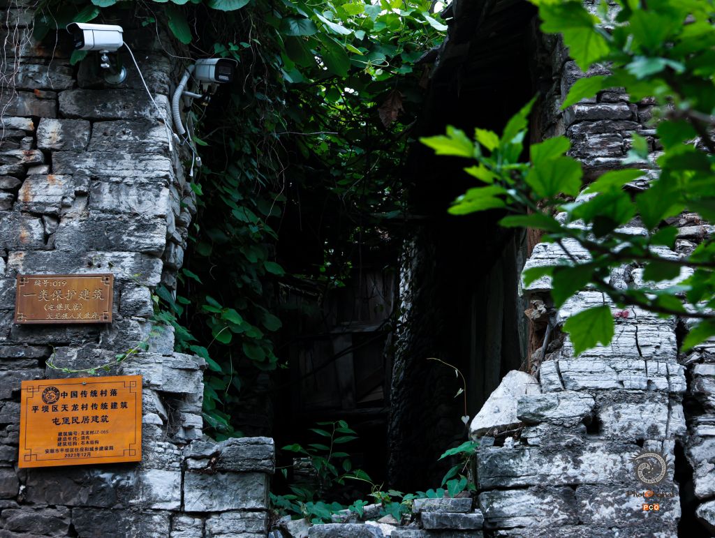 这是平坝区天龙村传统建筑——屯堡民居残垣。石块堆砌的墙体,爬满绿植,岁月斑驳其上。“一类保护建筑”“中国传统村落”的牌匾,见证其历史价值。监控设备与古旧建筑碰撞,呈现传统与现代交融。残垣似沉默老者,诉说屯堡过往,绿植如新生脉络,延续古寨生机,定格传统村落保护与时光侵蚀间的独特张力,留住历史根脉与文化记忆 。