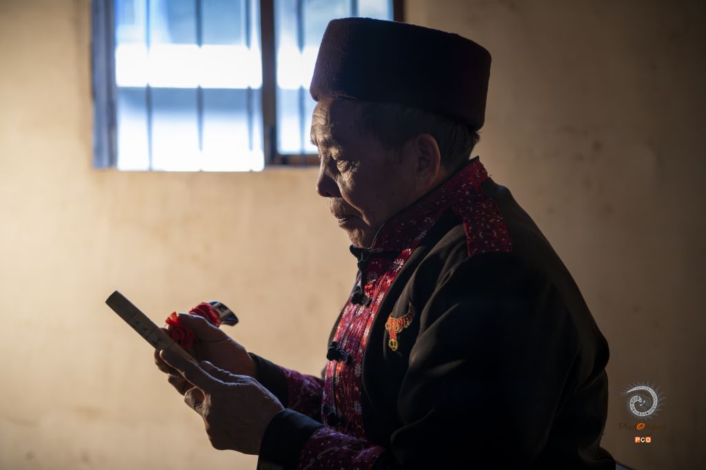 2024-12-22,黔东南施秉县杨柳唐镇屯上苗寨。苗族民间流传着一种神秘的“刻道”文化。“刻道”汉语的意思为“苗族开亲歌”, 是苗族古歌中历史较长、规模宏大的酒歌,主要叙述了苗族古老婚姻习俗的起源和习俗。是古代苗族族群中最早用各种符号刻录的一部婚姻礼俗法典。是苗族至今仍在活态传承着的表意符号。这根神奇的“刻木”记载了苗人的婚姻家庭变迁,记载了他们的欢乐和痛苦,记载了苗族厚重的历史文化。不仅有较高的文学艺术成就,对于认识和研究苗族的起源和迁徙、图腾崇拜、婚姻习俗、社会历史、数学知识、语言文字等均有着十分重要的价值,被社会学家以及历史学专家赞为“苗族最古老的婚姻‘活化石’”。2006年,“刻道”列入第一批国家级非物质文化遗产名录(遗产编号: Ⅰ-5)。“刻道”在嫁姑娘、接媳妇、媳妇回门时唱。主客双方都要唱刻道,唱不上来的一方要罚酒。最奇妙之处,是没有人知道对唱的人下一句会唱什么。国家级非遗传承人吴通贤50年来不遗余力宣传推荐“刻道”,半个世纪“刻”守之道,一生致力于“刻道”的传承。