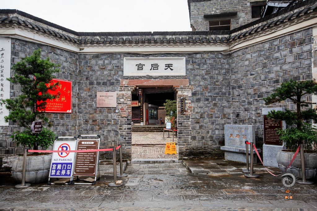 旧州天后宫,是贵州省黔东南苗族侗族自治州黄平县旧州镇西下街南侧的一处清代古建筑,又名福建会馆。始建于道光十七年(1837),咸丰五年(1855)毁于兵燹。光绪九年(1883)重建,二十七年(1901)扩建。坐南向北。原有牌楼大门、戏楼、前两厢、正殿、后两厢、后殿等。高封火墙围护,占地1202平方米。现存正殿、两厢、后殿等,建筑面积519平方米。旧州天后宫现有两殿规制壮丽,构架完好,是县境今存较好的古建筑之一。被列为黄平县文物保护单位。