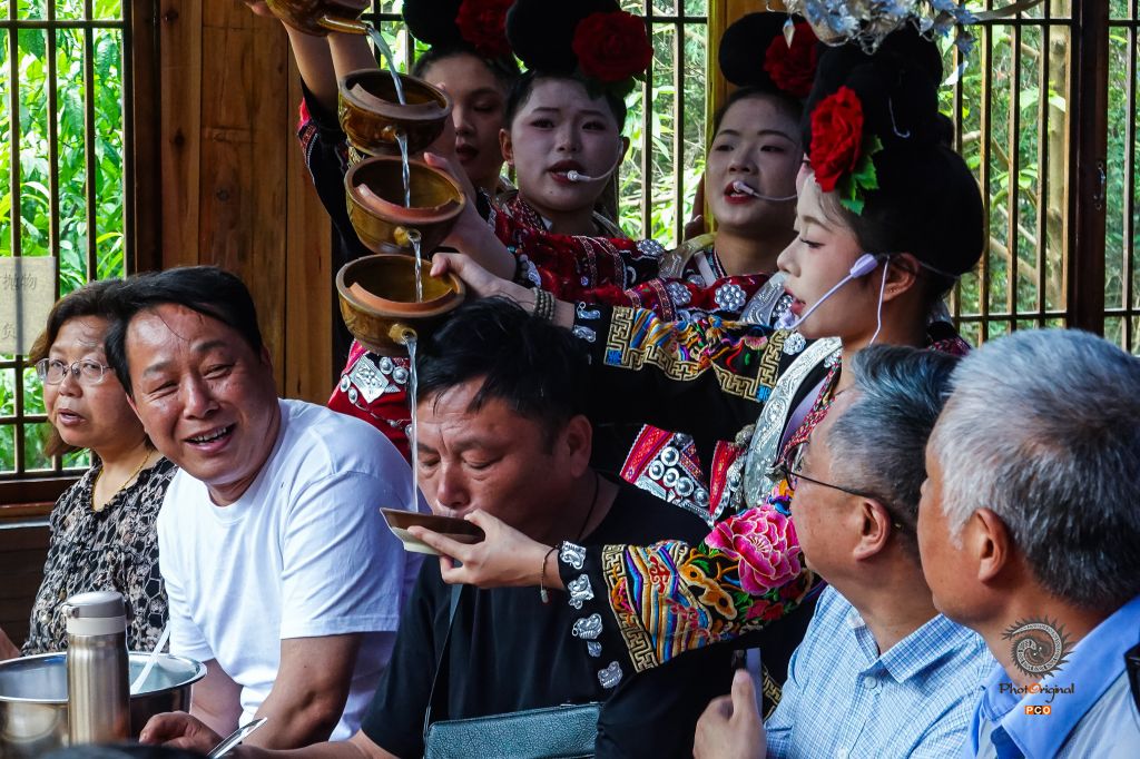 2025年5月23日,热情好客的苗寨姑娘,用她们习惯的方式为客人敬酒。