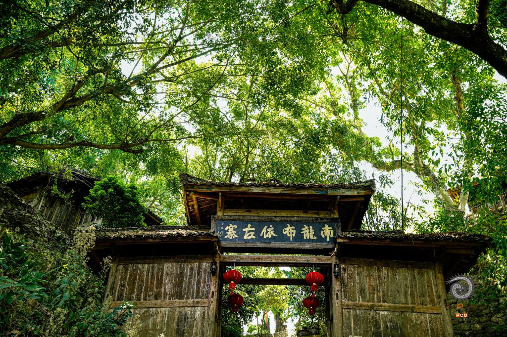 2025 年 4 月 26 日,踏入贵州省南龙村,仿若步入了一幅静谧的水墨古画。 村口,木质的寨门饱经岁月的洗礼,泛着古朴的色泽,牌匾上的“南龙布依古寨 ”几个大字苍劲有力,诉说着村寨的悠久历史。两盏鲜红的灯笼在微风中轻轻摇曳,为这古朴之地添了几分灵动与生气 。 寨门之上,老旧的瓦片错落有致,记录着时光的斑驳痕迹。周围繁茂的古树,枝叶如盖,绿意盎然,将寨门掩映其中,阳光透过枝叶的缝隙洒下,光影交错,营造出一种宁静而悠远的氛围。在这里,时间仿佛放慢了脚步,每一处景致都在无声地讲述着南龙村的故事,让人沉醉于它独有的古朴与宁静之中 。