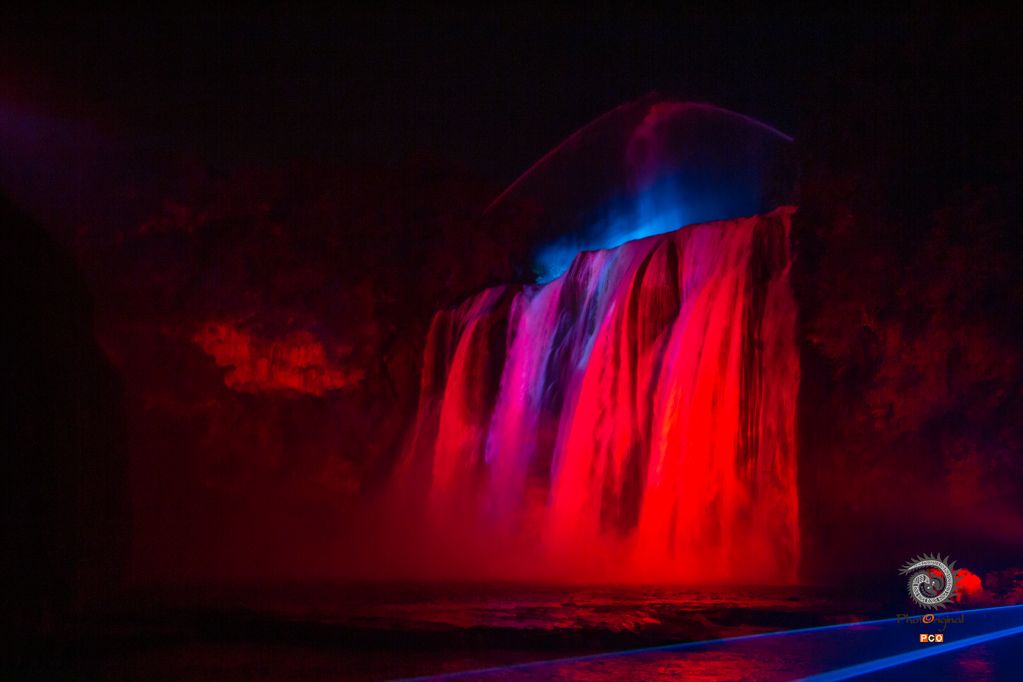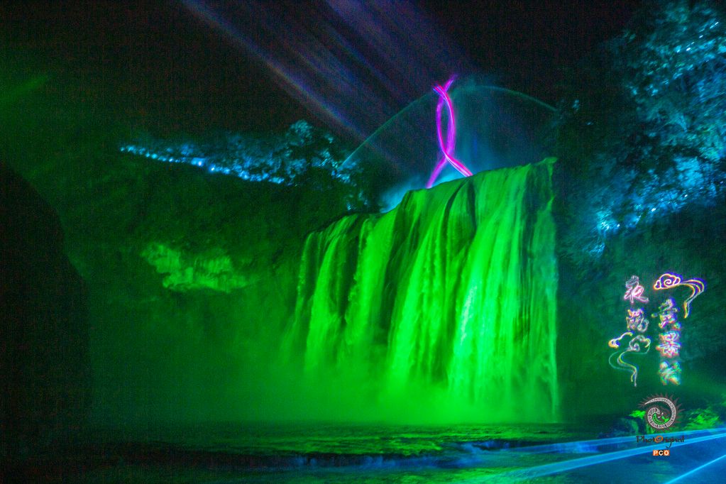 贵州省安顺市黄果树大瀑布景区,奔腾而下的瀑布在阳光的照射在下,呈现出绚丽的彩虹与其交相辉映美不胜收。夜晚,“光影+艺术+文化”科技手段打造的“炫彩瀑布”又精彩上演,令不少游客赞叹不已陶醉其间。 据了解,夜游黄果树项目给游客带来独特的体验。白天观赏壮观无比的黄果树大瀑布之后,越来越多的游客又继续夜游黄果树,沉浸式体验一场山水之间上演的大型灯光秀,感受到与日间游玩不一样的旅游体验。夜游黄果树项目让来黔游客有了更丰富、更精彩的选择,延长游客停留时间,带动周边餐饮与住宿业消费升级,形成了新的经济增长点。