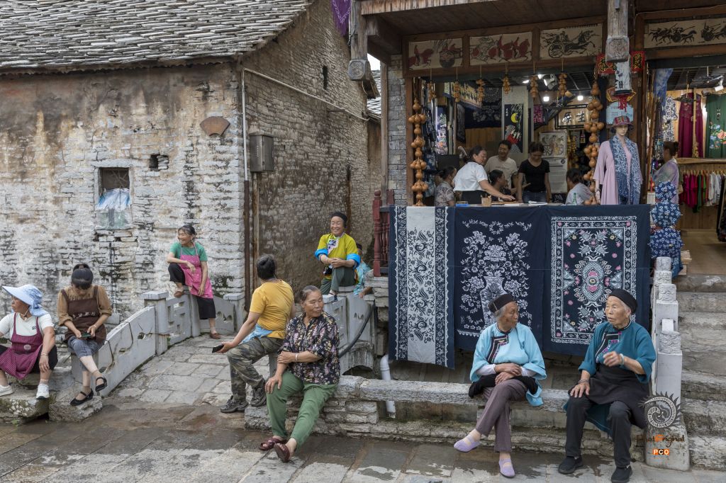 2505年7月18日摄于天龙屯堡,人们三三两两坐在街边休闲聊天。