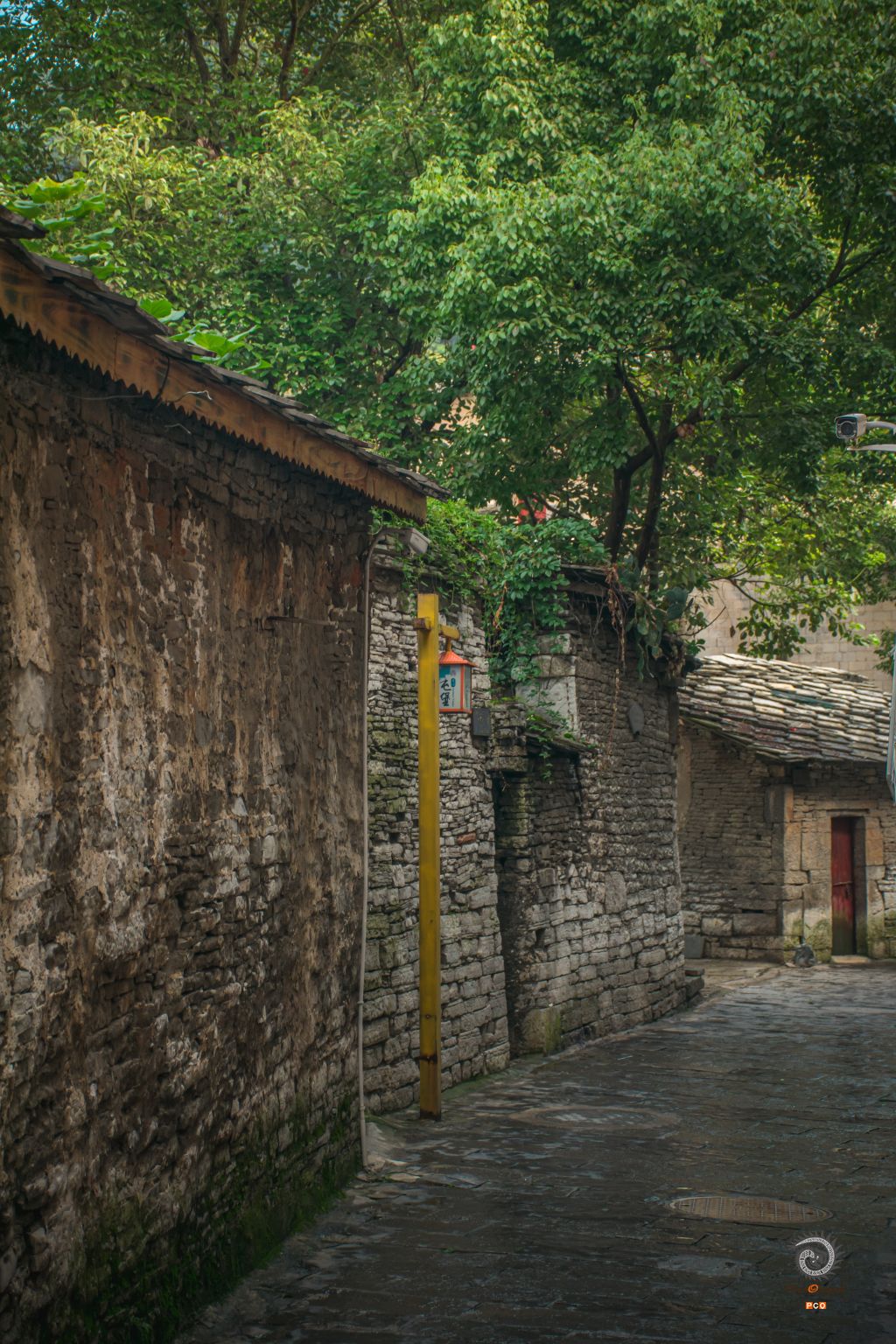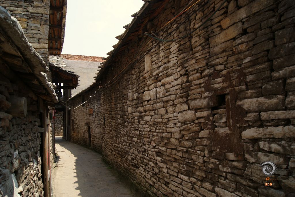 白色的石灰石是明清屯堡的主要建材,就地取材铸就起坚强的堡垒和极具民族风气的屯堡建筑。本组照片选用了安顺天龙屯堡和云峰坉的街巷微观照片,展现屯堡石头村寨肌理上的乡愁。