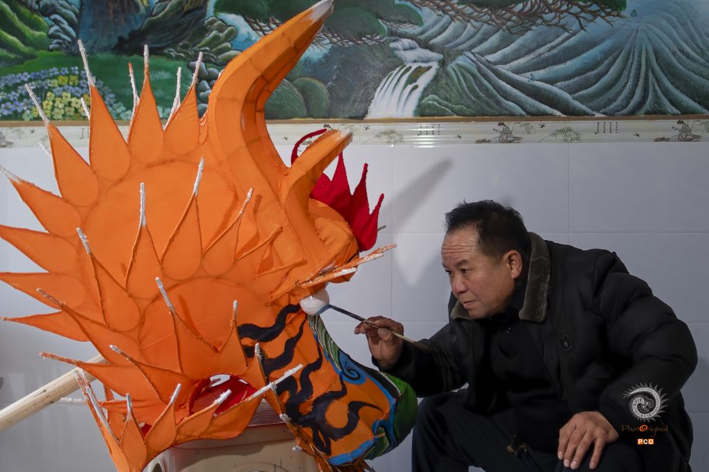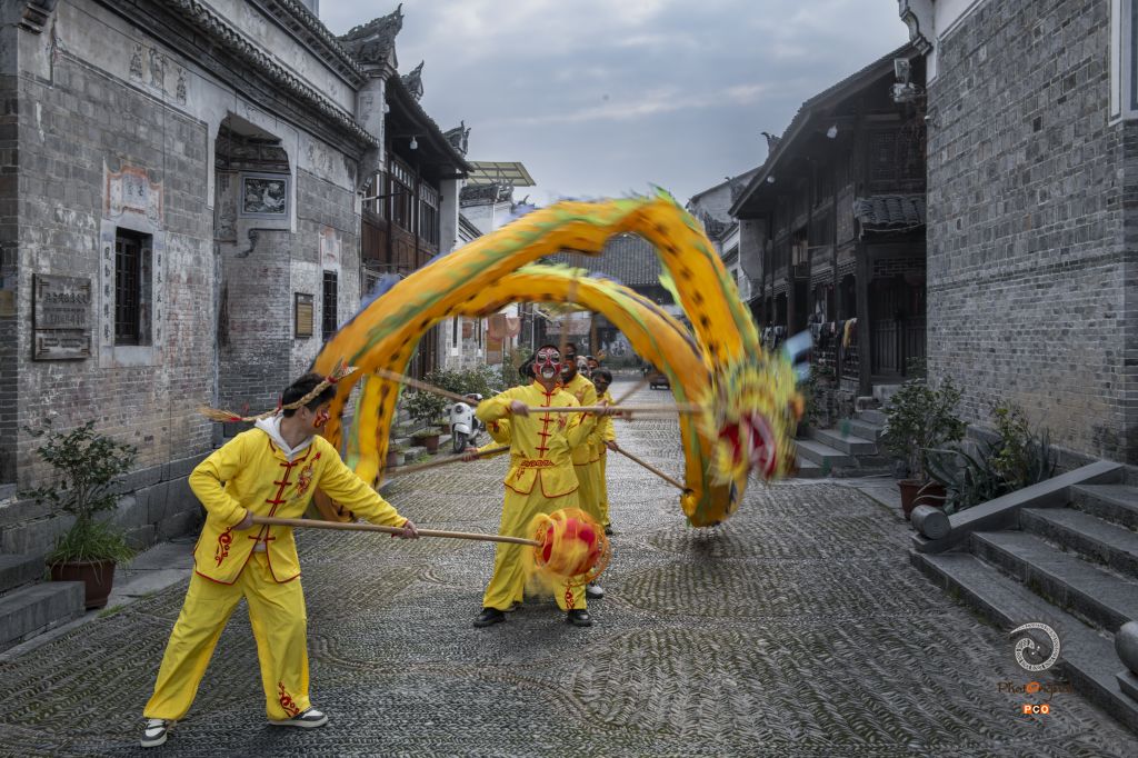 2024-12-23,黔东南州锦屏县隆里乡。隆里花脸龙的起源,据《龙标志略》记载,是从宋朝宋太祖赵匡胤建功立业后“蓝季子会大哥”一则戏的传统故事演化而来,其脸谱及表演形式,亦源于汉戏《蓝季子会大哥》的角色面妆和表演内容。“花脸龙”,顾名思义,就是在所有舞龙人的脸上按照戏曲生、旦、净、末、丑,画上五彩脸谱。花脸龙的高潮戏是由位居龙尾的蓝季子挑起,此时龙尾变龙头,这位滑稽可爱的丑角,摇身一变成为队伍中的龙头,时不时用糍粑去抹围观人群嘴巴,向观众装疯卖傻,丑态百出,打逗追戏尽显其能。这种屯军文化和苗侗文化融合演变而来舞龙与戏曲相结合特殊的民间艺术,是少数民族地区的汉文化社区典型代表。2005年,“隆里花脸龙”被列入第一批贵州省级非物质文化遗产代表性项目名录。