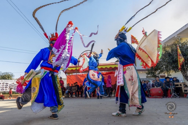刘芳 13606339200 安顺新阳高台地戏 (8)晨光漫过新阳坡木高台,为地戏表演者镀上金边。镜头在明暗交错中游走:逆光勾勒甲胄的锋利轮廓,侧光雕琢脸谱的油彩褶皱,柔光捕捉台下老者的湿润眼眶。快门与鼓点共振,定格腾跃时的光影割裂,让六百年的军屯忠勇,在光与影的博弈里,于木台之上苏醒、呼吸、传承。(8/8)