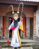 8镜头聚焦安顺新阳坡木高台地戏,以仰角捕捉表演者立于高台的英武身姿,铠甲银饰在日光下泛着古战场的凛冽光泽。特写脸谱上的油彩与眉宇间的张力,远景收进台下村民的凝神注视。快门定格于腾跃瞬间的衣袂翻飞,让六百年军屯记忆在高台之上,借铿锵舞步与炽热目光,完成一次与历史的对话。(8/12)