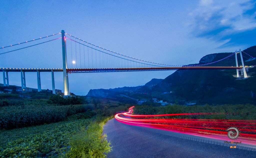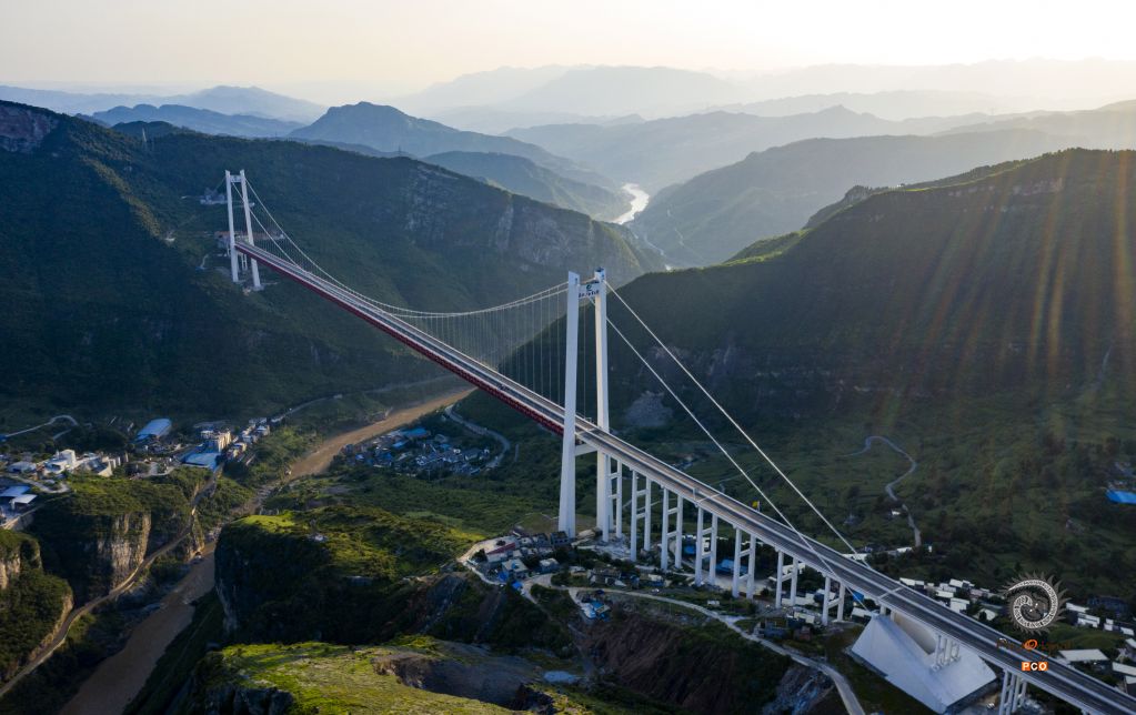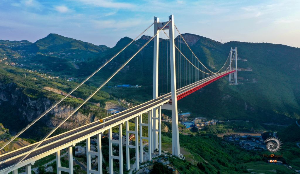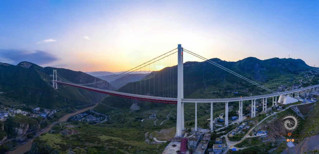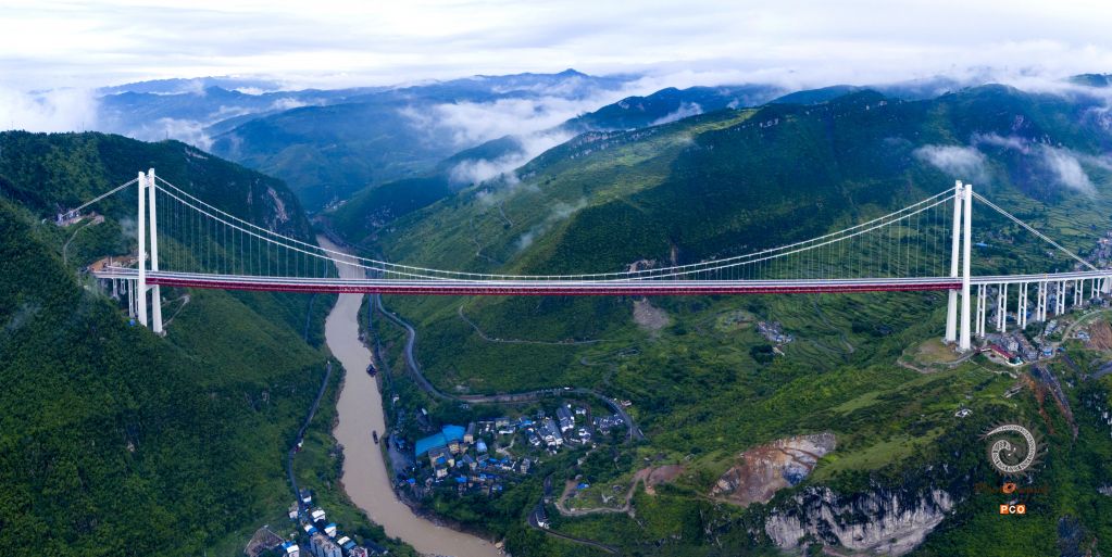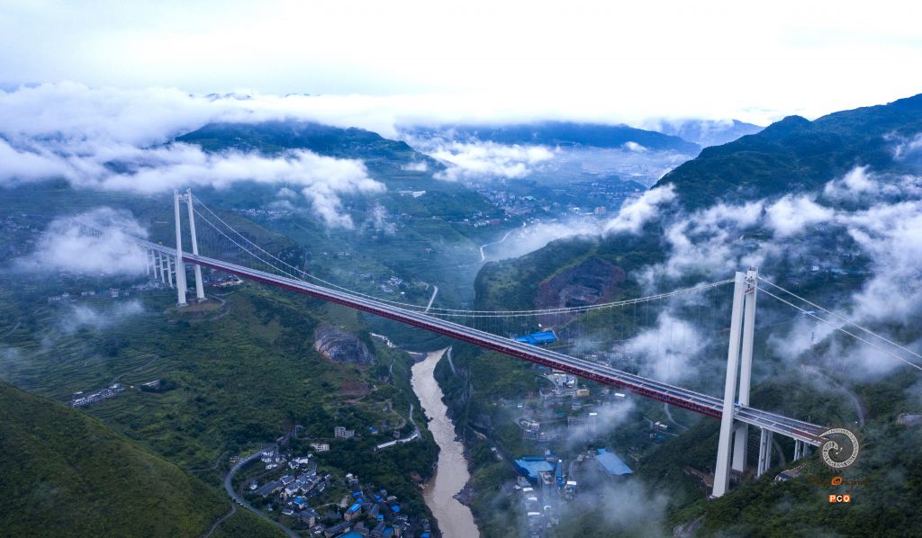 赤水河红军大桥位于川黔交界乌蒙山区和中国工农红军“四渡赤水”革命老区,连接贵州、四川、重庆三省市的江习古高速公路,全长2009米,主桥为1200米双塔单跨钢桁梁悬索桥,主塔高243.5米。