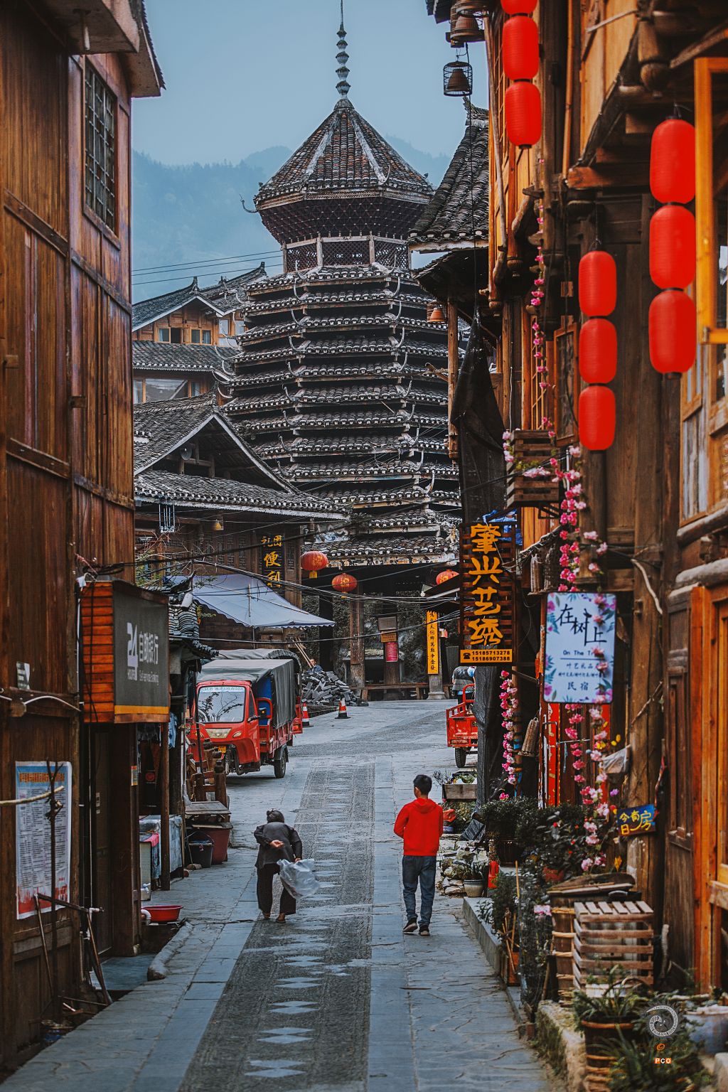 2021年3月拍于贵州肇兴侗寨里,寨子里的老建筑与新生事物形成鲜明的对比